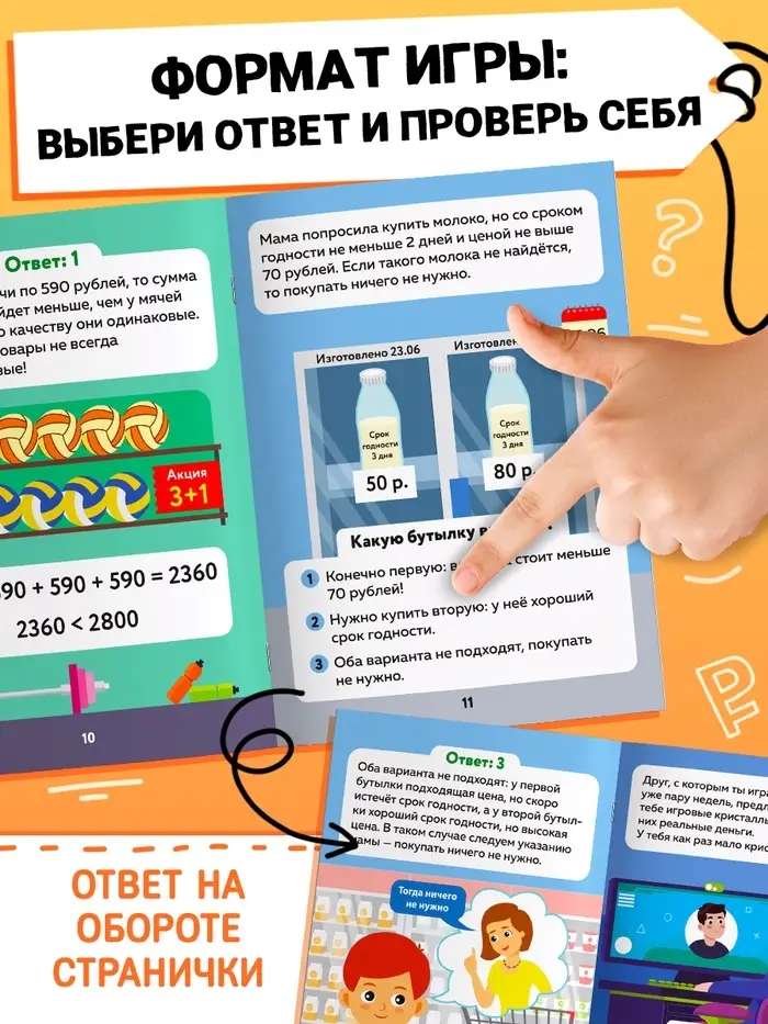 Книга «Финансовые задачки» станет полезным помощником для детей от 7 лет. Эти 44 страницы с ситуационными задачами научат ребёнка принимать осознанные финансовые решения и грамотно распоряжаться деньгами.