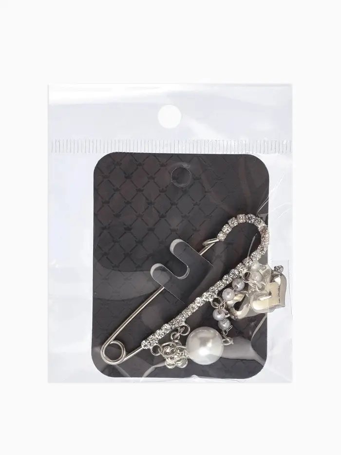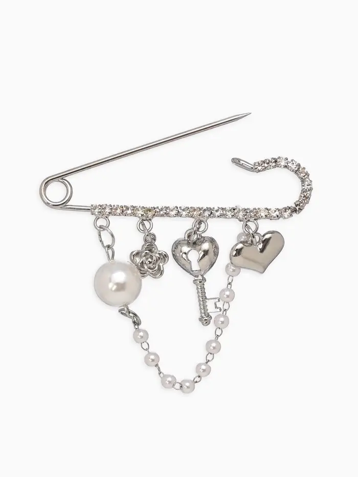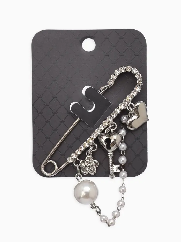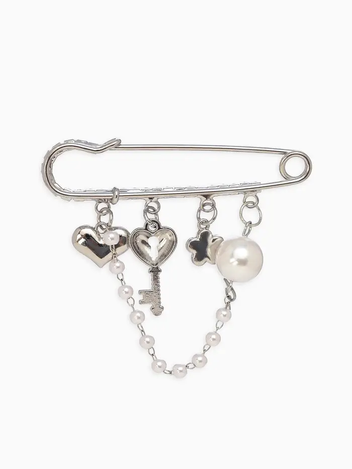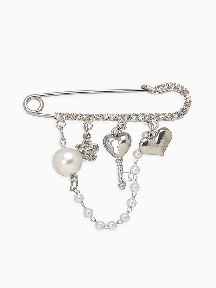Булавка "Ключик от сердца", l=6.5, цвет белый в серебре