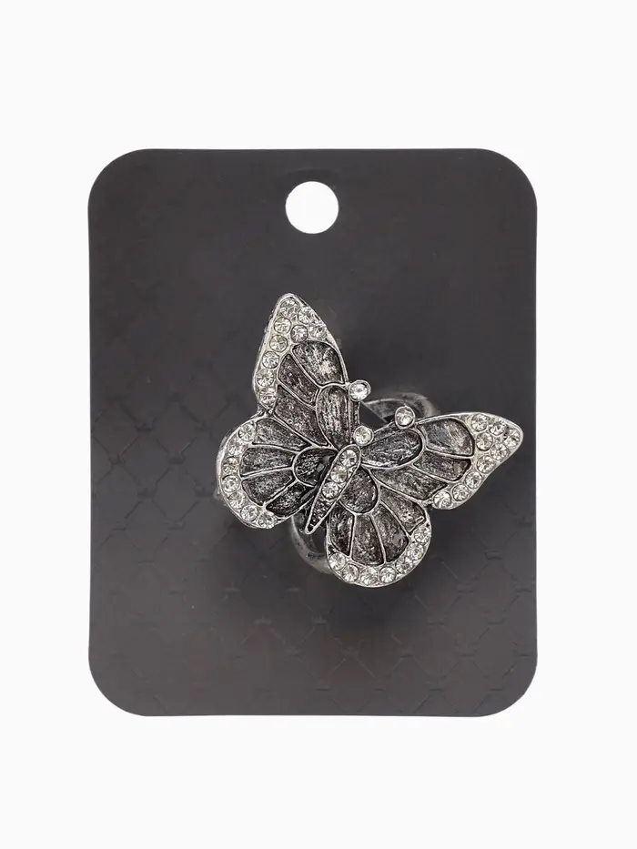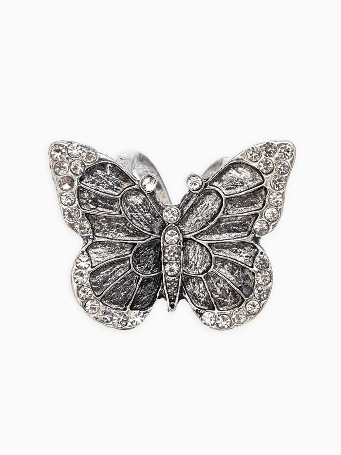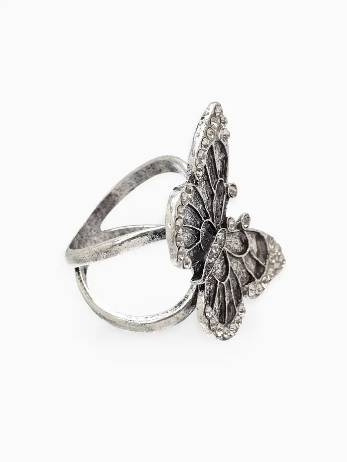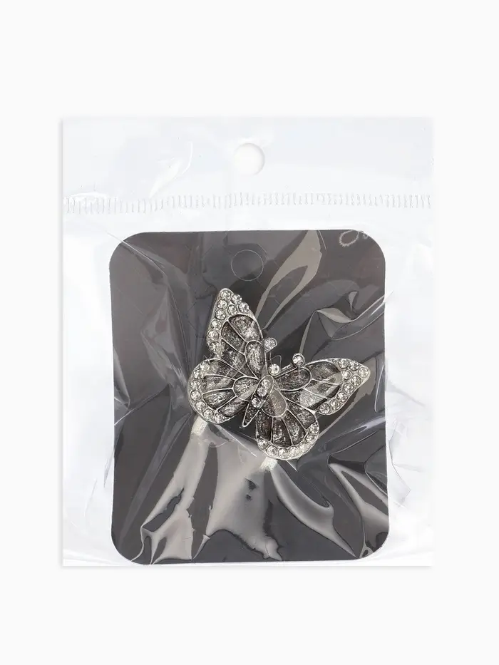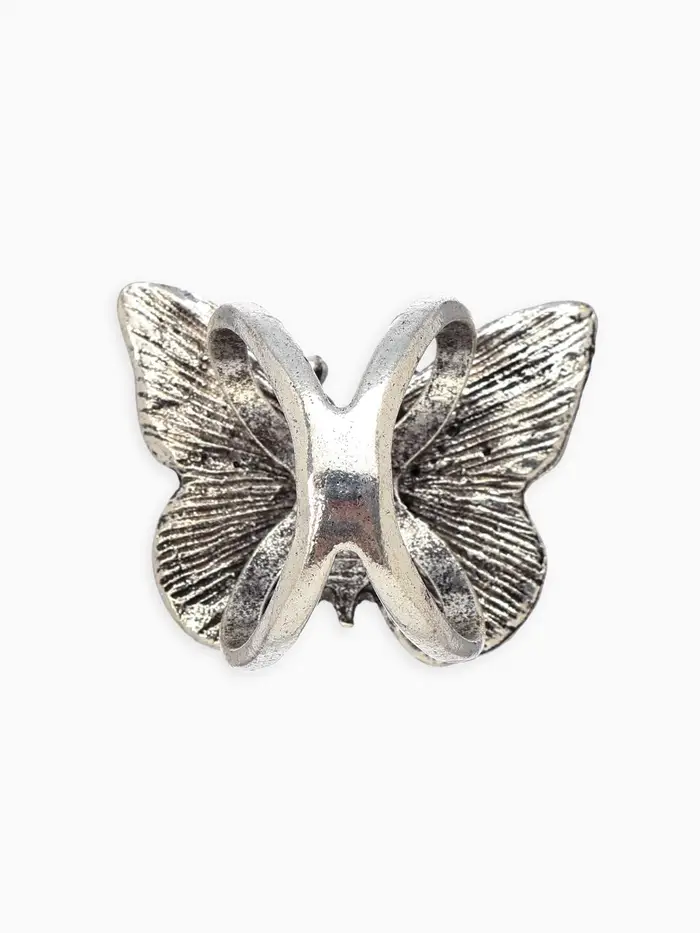 Кольцо для платка "Бабочка", цвет белый в чернёном серебре