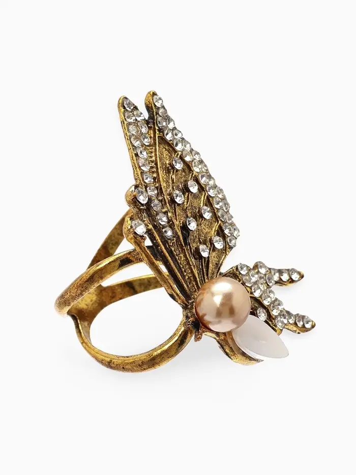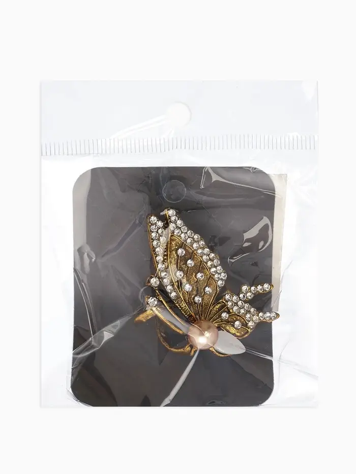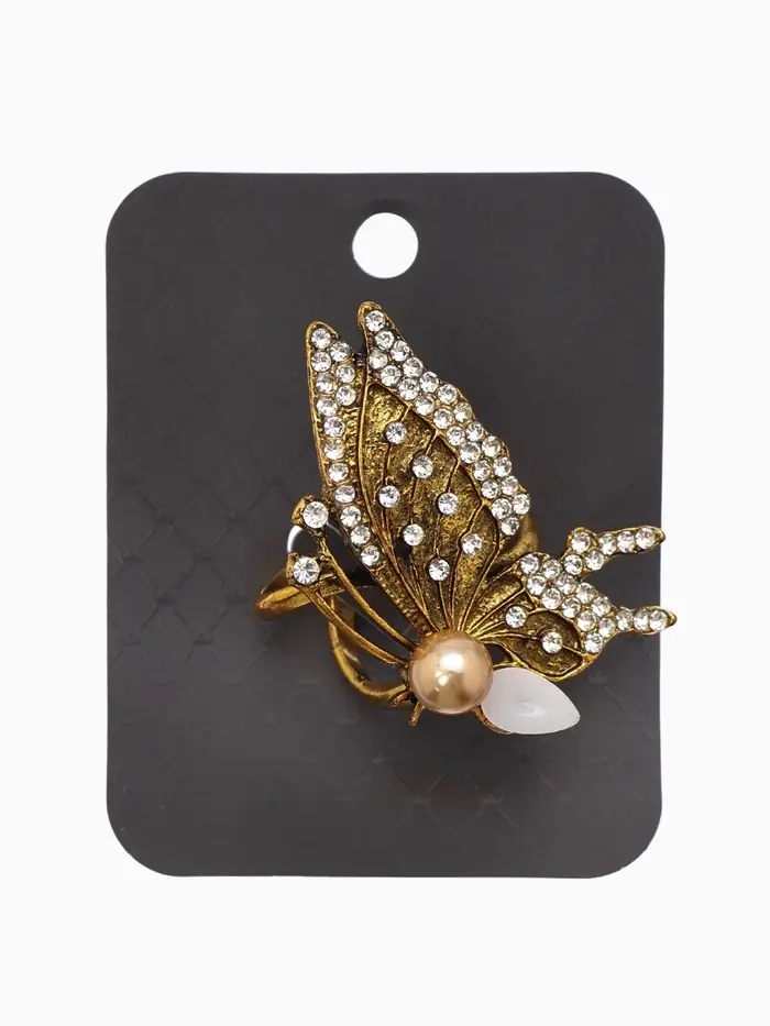Кольцо для платка "Бабочка профиль", цвет белый в чернёном золоте