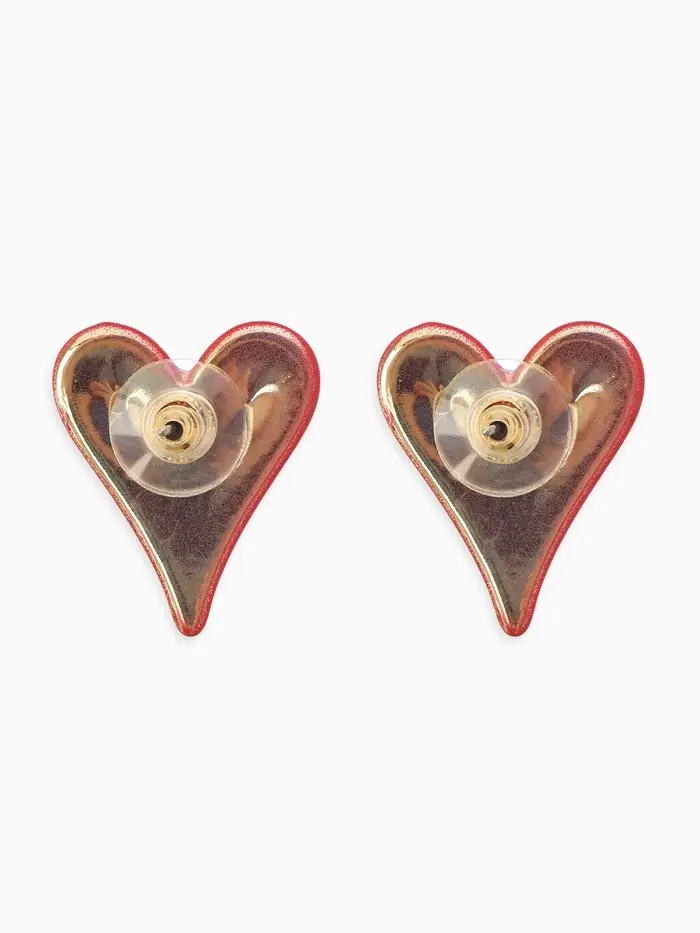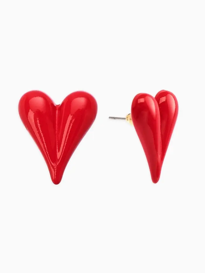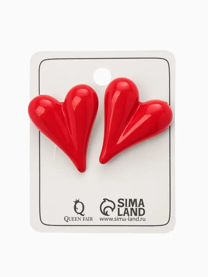 Серьги эмаль "Сердечки" вытянутые, цвет красный в золоте