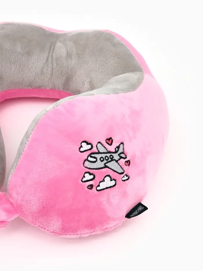 Подушка для путешествий бархатная формовая "Самолет", розовая