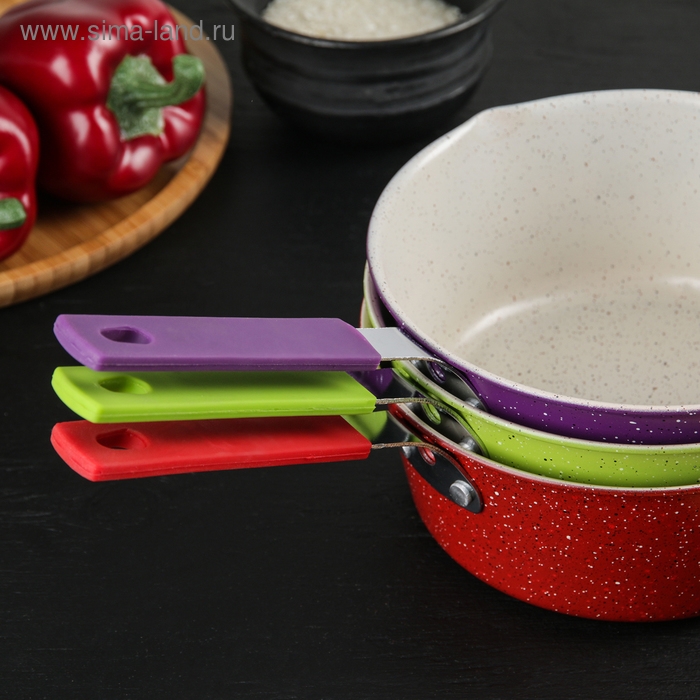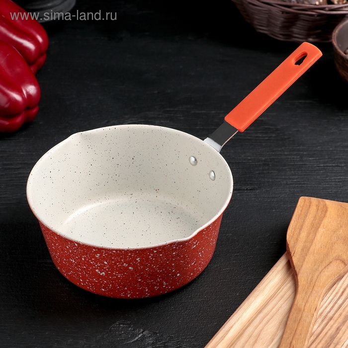 Ковш «Мрамор светлый», 1 л, силиконовая ручка, антипригарное покрытие, цвет МИКС
