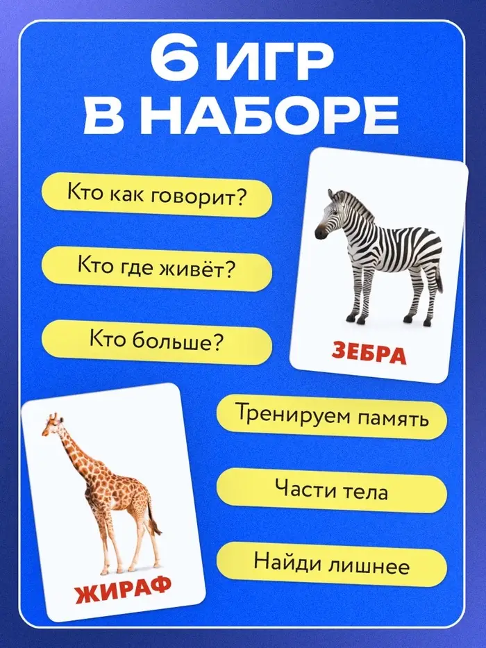 Магнитные карточки по методике Домана «Животные», 32 карты, 3+