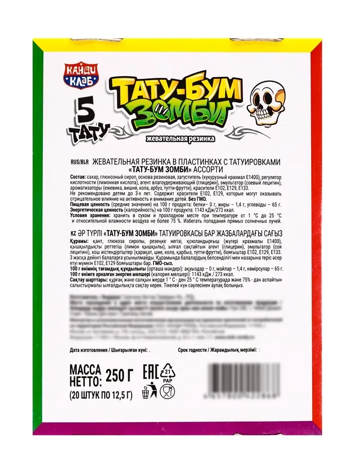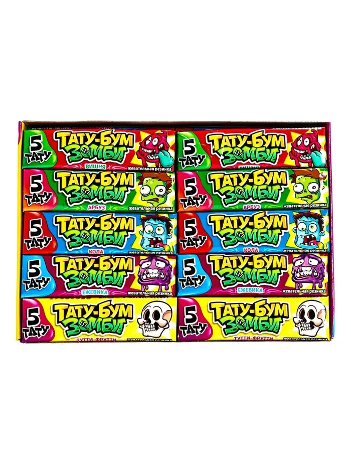 Жевательная резинка в пластинках с татуировками "ТАТУ-БУМ ЗОМБИ" ассорти 12,5гр