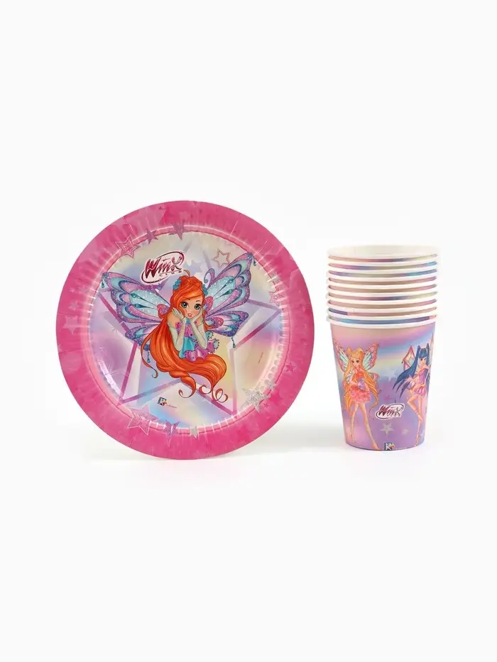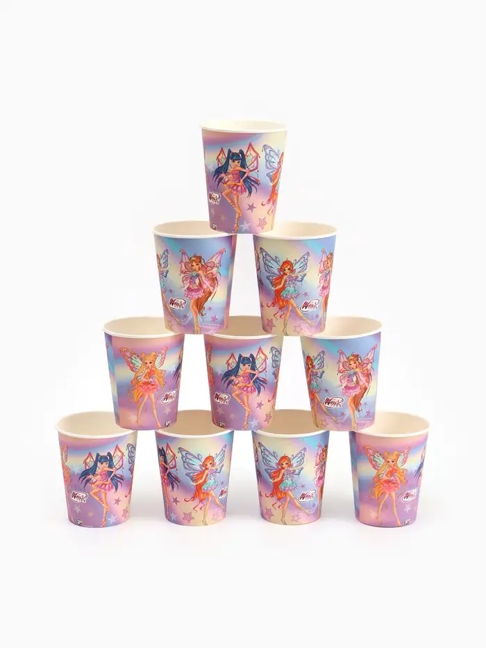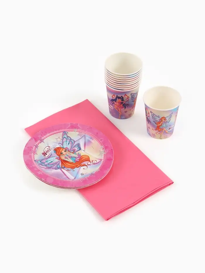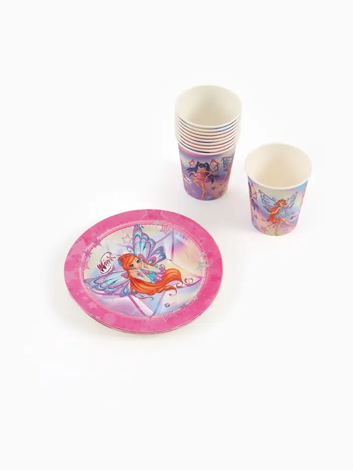 Посуда одноразовая бумажная на 10 персон: стаканы, тарелки, скатерть, ВИНКС