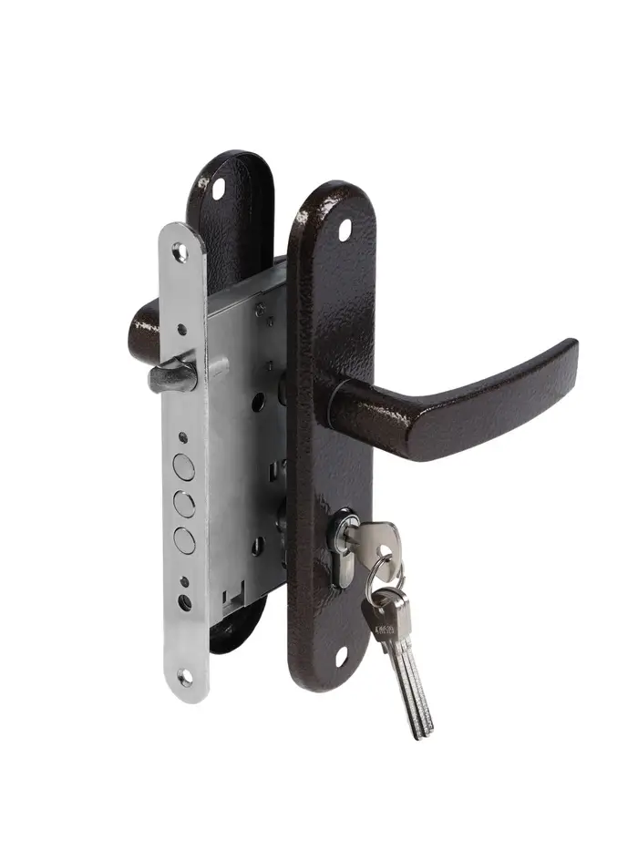 Замок врезной LOCKLAND RD005, с ручкой, B/S 55 мм, 4 ключа, цвет коричневый