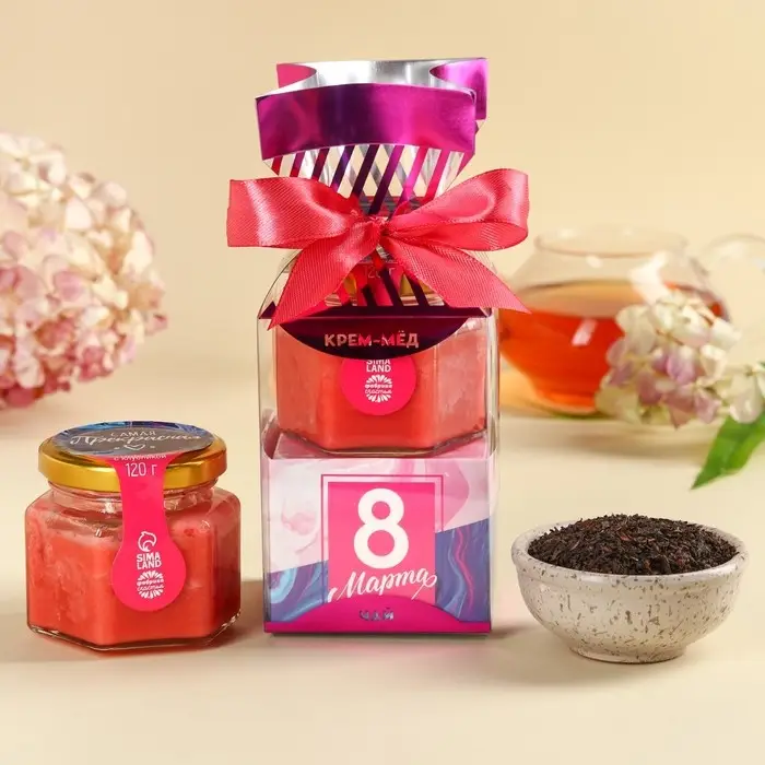 Набор «8 Марта»: крем-мёд, чай 50 г