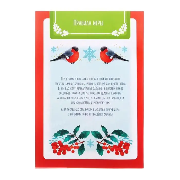 Не знаете, чем занять ребёнка в зимние каникулы? В этой книге вас ждёт множество заданий, в которых нужно соединять картинки по точкам и раскрашивать их, а также дорисовывать некоторые элементы. Также в качестве бонуса есть дополнительные игры, в которые можно сыграть зимой дома, на улице или в поездке.