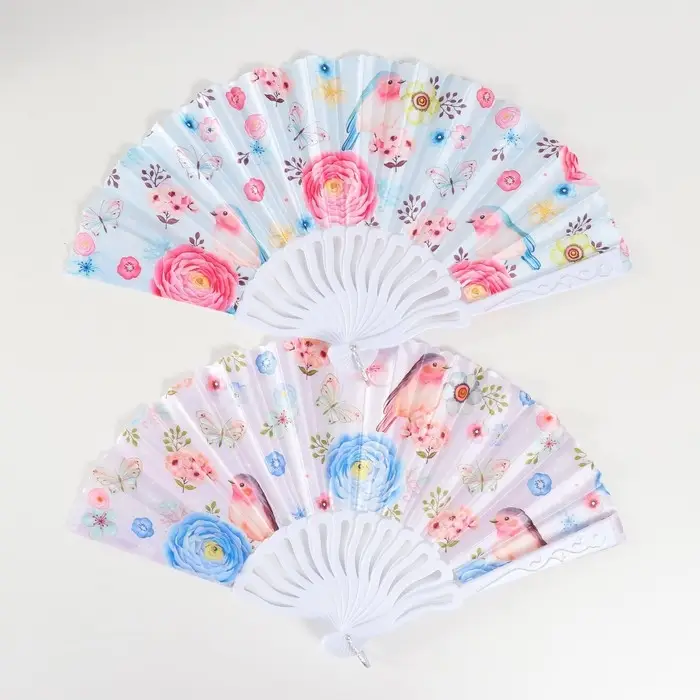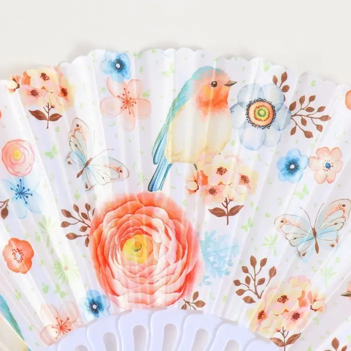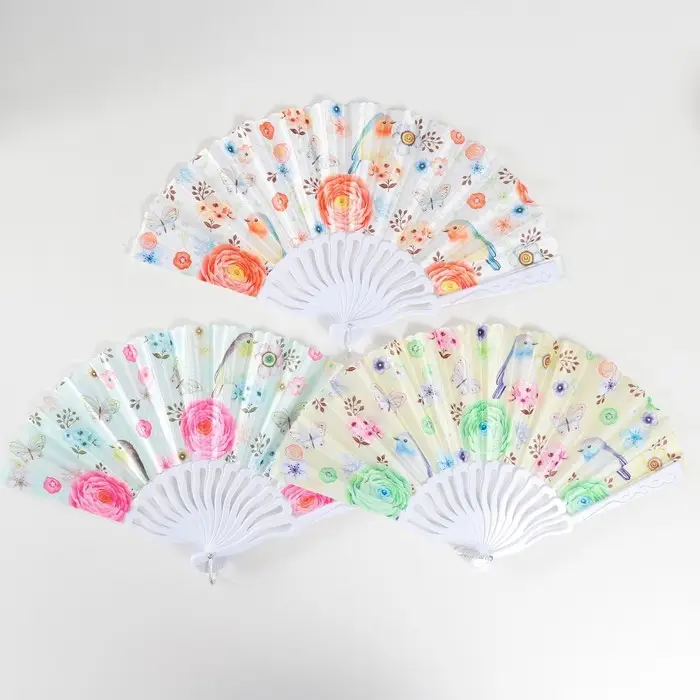 Веер пластик, текстиль "Птички и цветы" МИКС 23 см