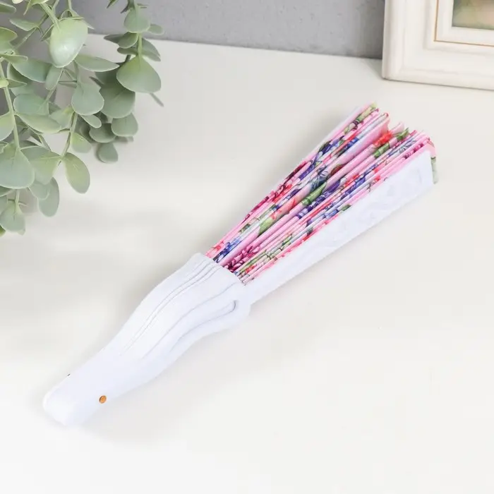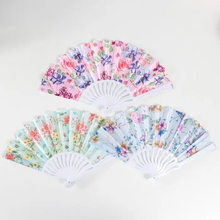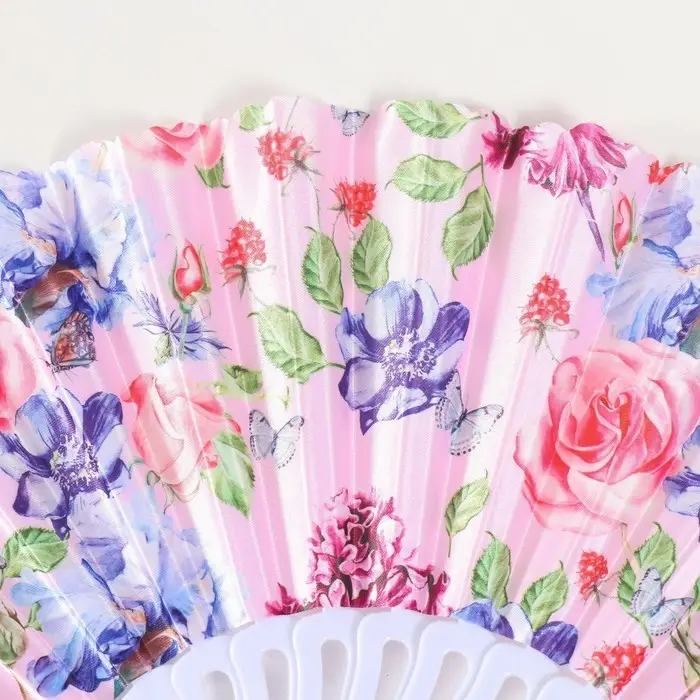 Веер пластик, текстиль "Розы" МИКС 23 см