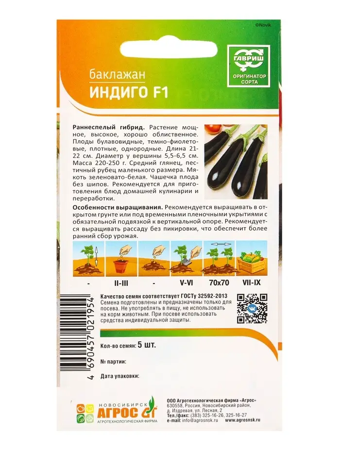 Семена Баклажан "Индиго" F1 5 шт