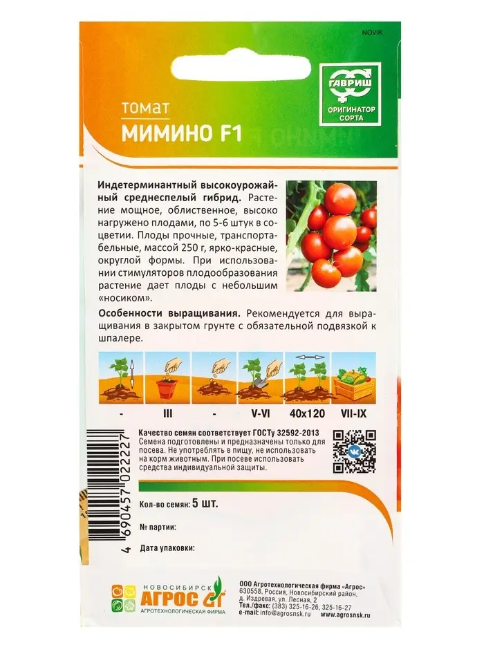 Семена Томат «Мимино», F1, 5 шт., «Агросс»