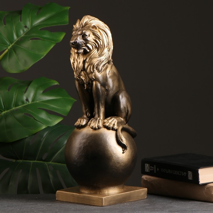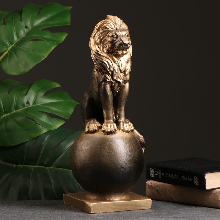 Копилка "Лев на шаре малый" черное золото, 42х17х16см