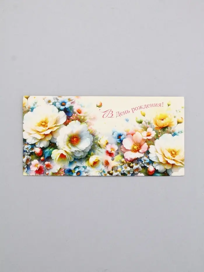 Конверт для денег «В День Рождения!», нежные цветы, 16,5 х 8 см