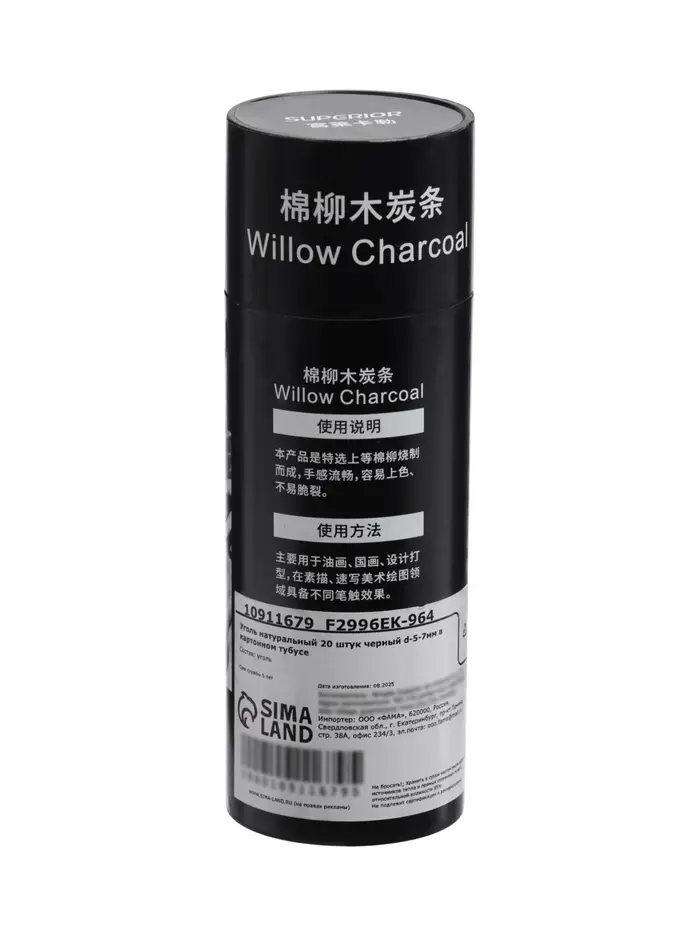 Уголь натуральный 20 штук, d=5-7 мм, в картонном тубусе, черный