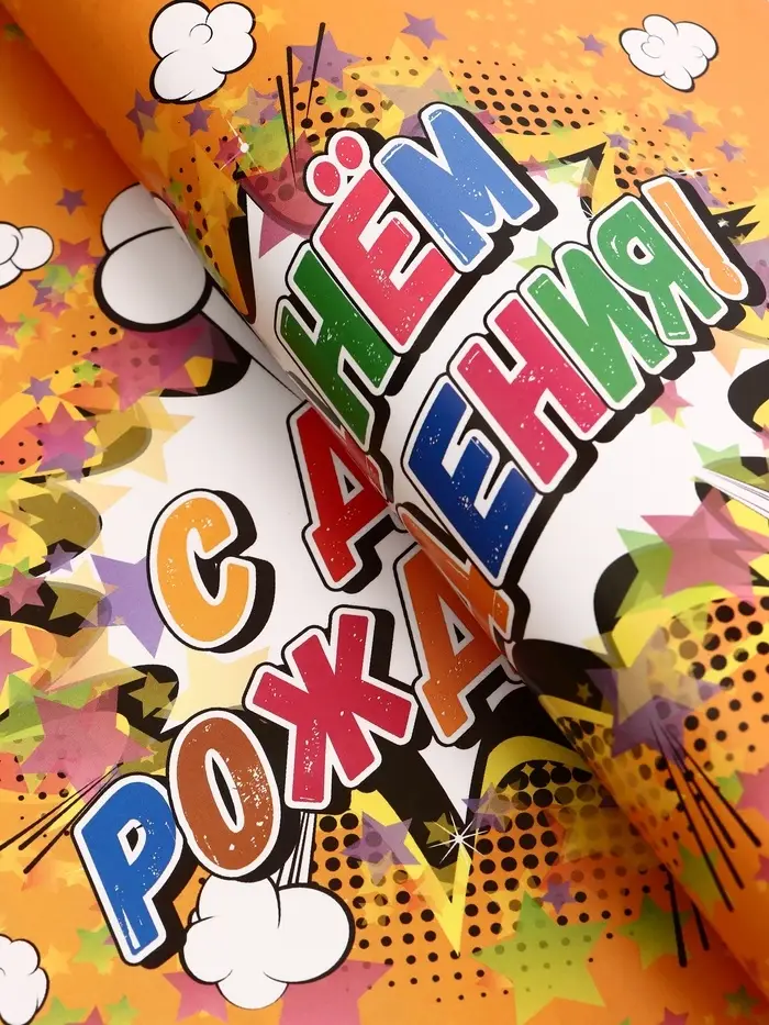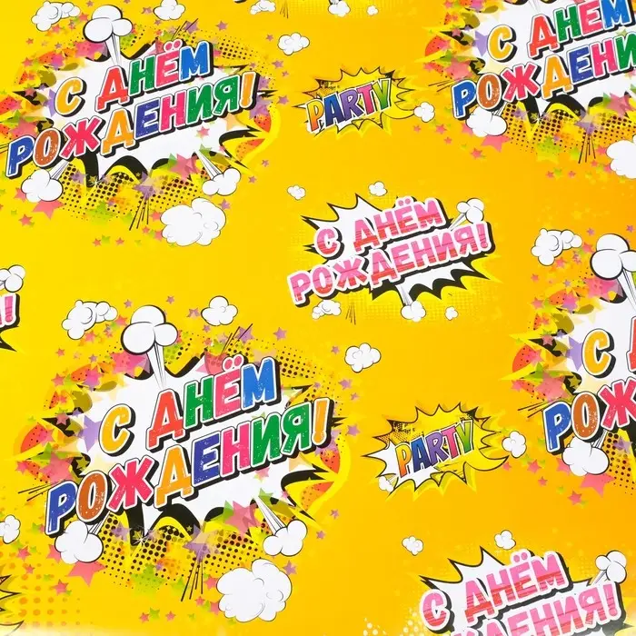 Бумага упаковочная, глянцевая "С Днем Рождения", 70 х 100 см, 1 лист