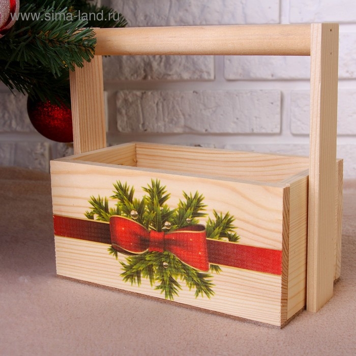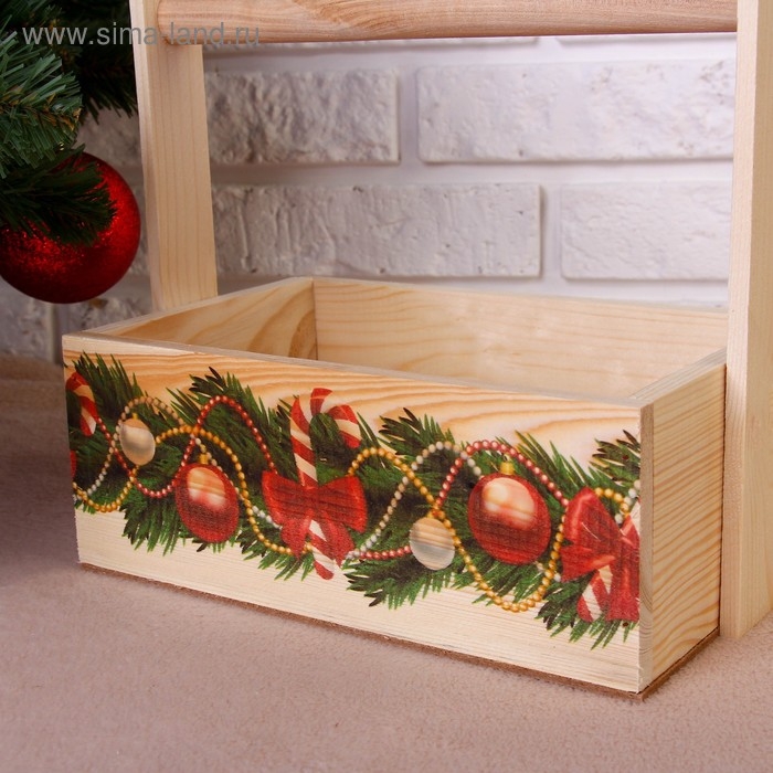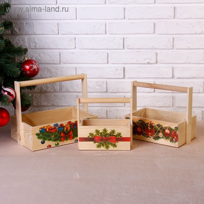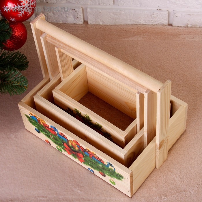 Набор кашпо деревянных "Новогодний №2" 3 в 1, МАССИВ СОСНЫ, деревянная ручка, натуральный