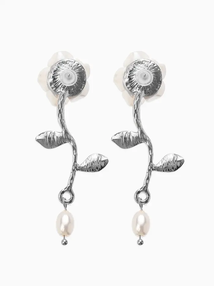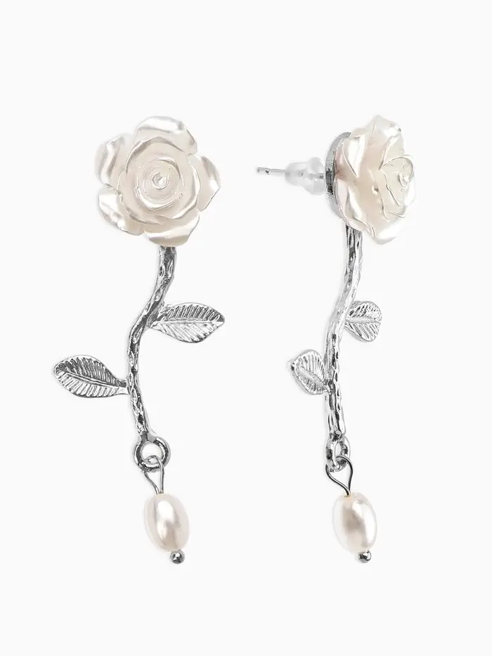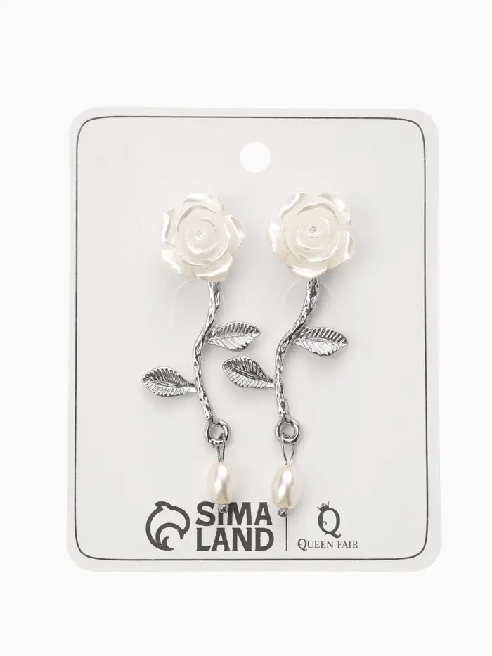 Серьги "Цветок розы", цвет белый в серебре