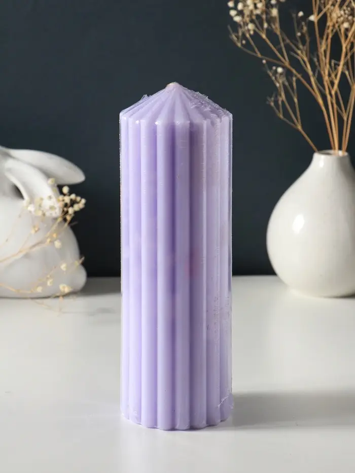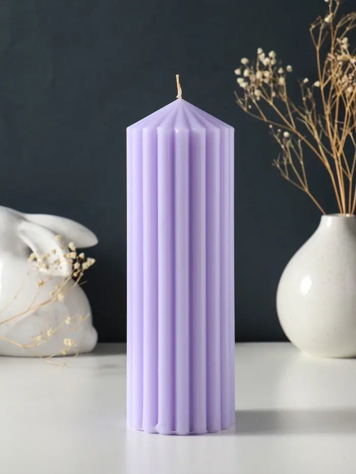 Свеча-цилиндр 7х20 см, 600 гр, с крупными гранями, лаванда