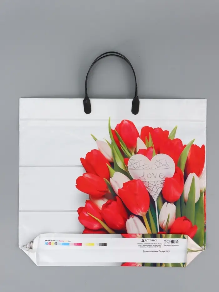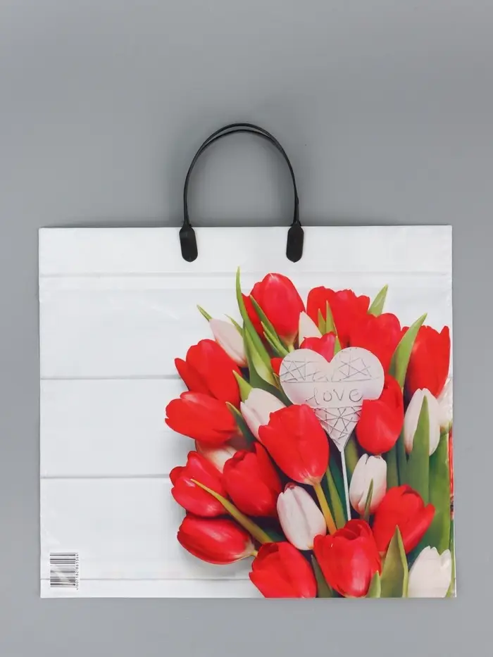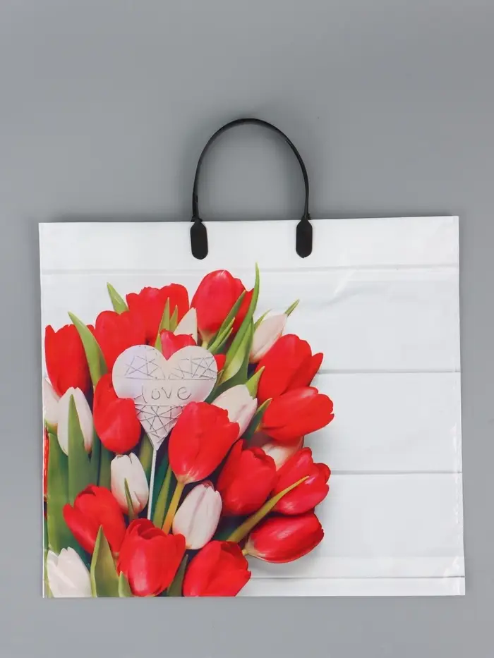 Пакет "С любовью", полиэтиленовый с пластиковой ручкой, 38 х 34 + 3 см, 90 мкм