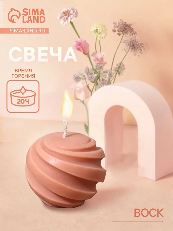 Фигурная свеча «Шар» из соевого воска — минималистичный акцент для уюта без отвлекающих ароматов. Её идеальная форма и мягкий оттенок добавляют интерьеру спокойствия: будь то вечерняя ванна, ужин при свечах или просто тихий момент наедине с собой. Свеча горит ровно и чисто, не перебивая тишину посторонними запахами.