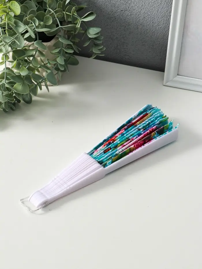 Веер пластик, текстиль "Цветы и узоры" МИКС широкие лопасти, золото 23 см