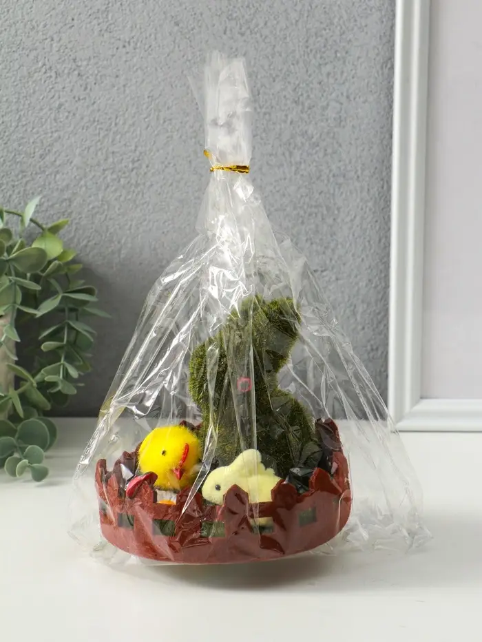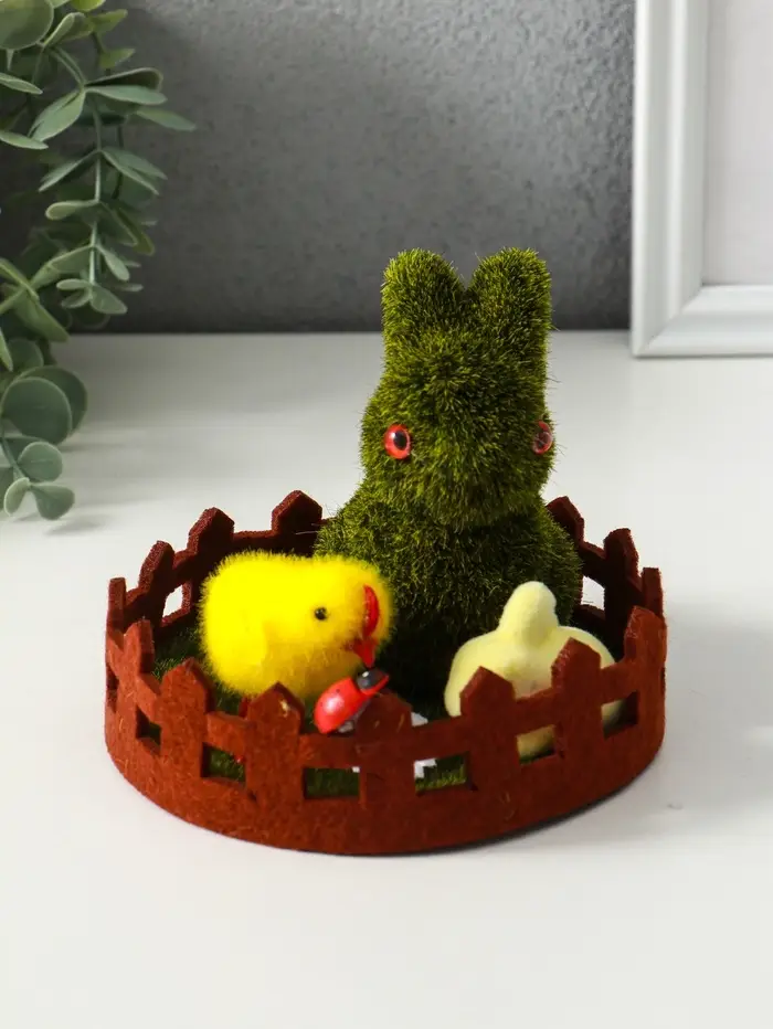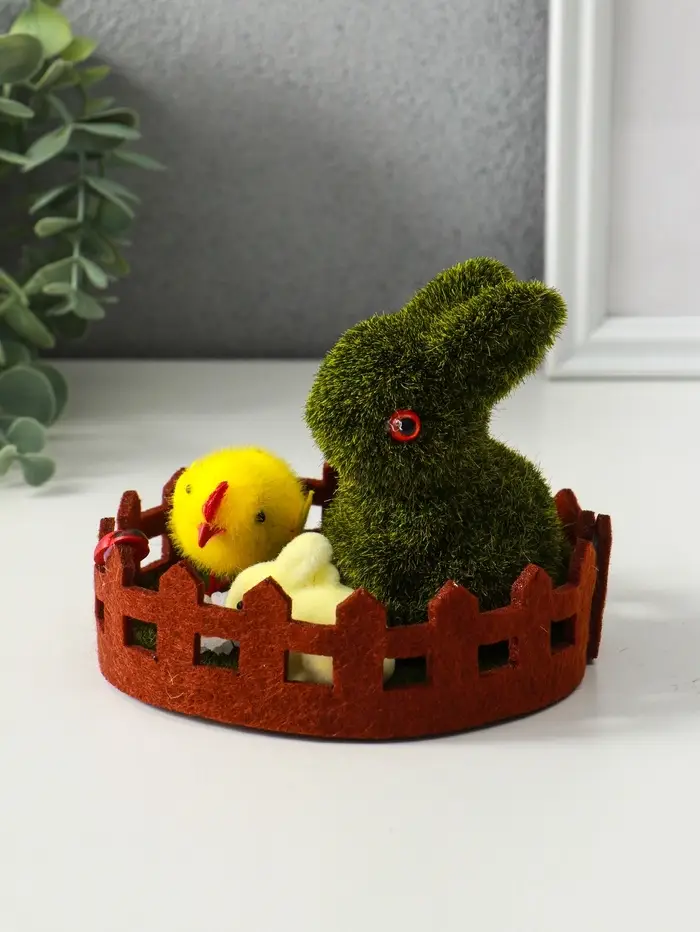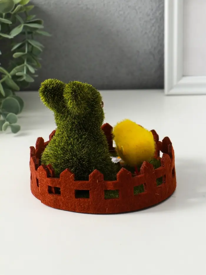 Сувенир пасхальный "Зайчик с цыплятами на лужайке с забором" 12,5х12,5х10,5 см
