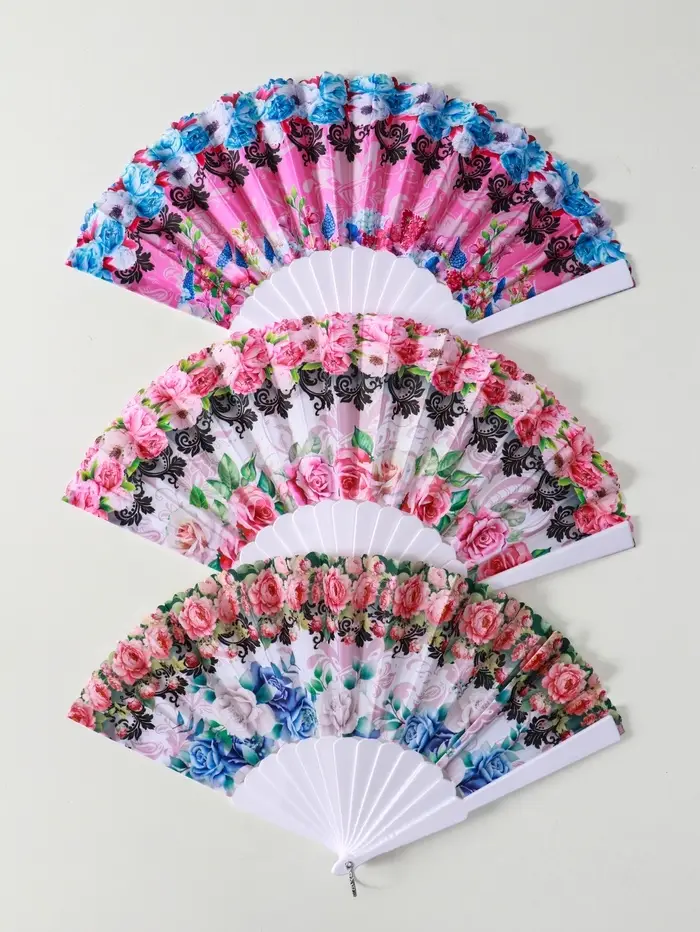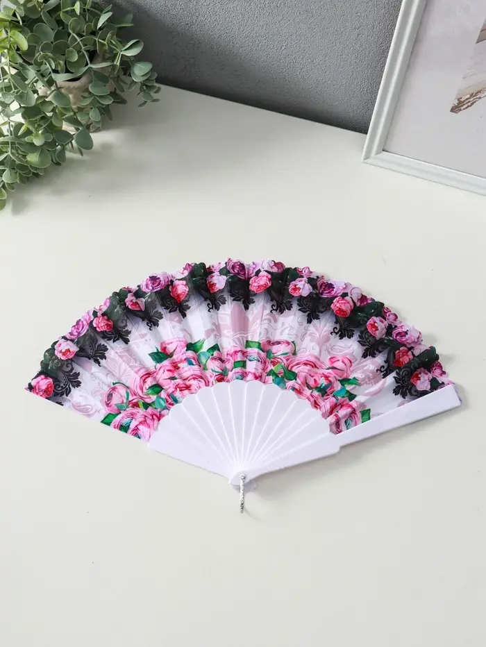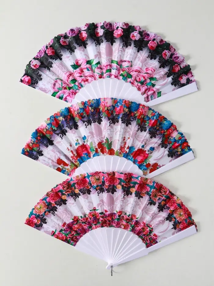 Веер пластик, текстиль "Цветочный" МИКС широкие лопасти 23 см