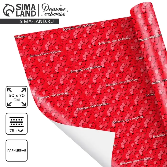 Бумага упаковочная глянцевая «Больше, чем любовь», 70 × 100 см