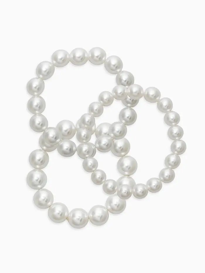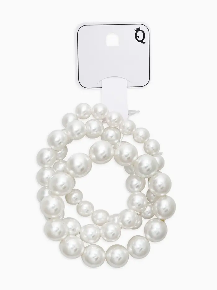 Браслет "Бусины жемчуга" (набор 3 шт), №10,12.14, цвет белый