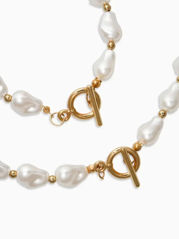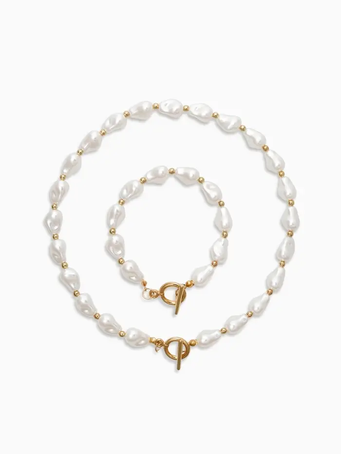 Набор 2 пред-та: бусы,браслет "Жемчуг барочный", капля, 40/18см, цвет белый в золоте
