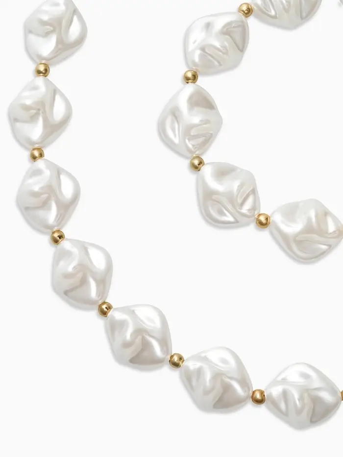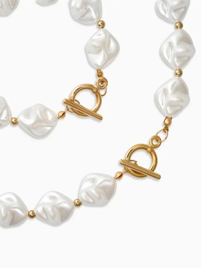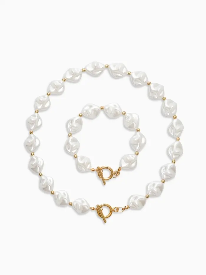 Набор 2 пред-та: бусы,браслет "Жемчуг барочный", ромб, 40/18см, цвет белый в золоте