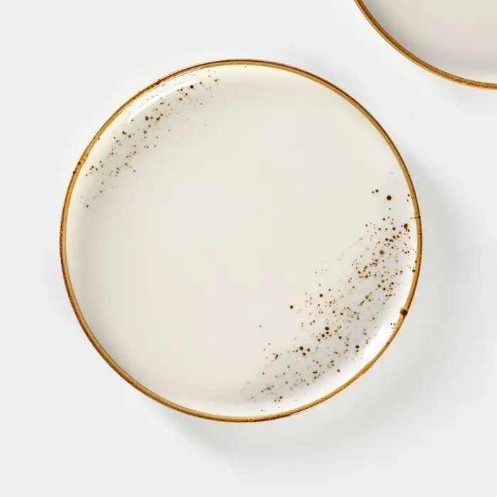 Эти блюда — тихий акцент на столе: белый фон с редкими точками не отвлекает от еды, но придаёт сервировке завершённость. Используйте их для подачи канапе, запечённых овощей, сыров или фруктовой нарезки. Набор из двух одинаковых тарелок особенно удобен, когда нужно сервировать парные порции — будь то для ужина вдвоём или стильного фуршета.