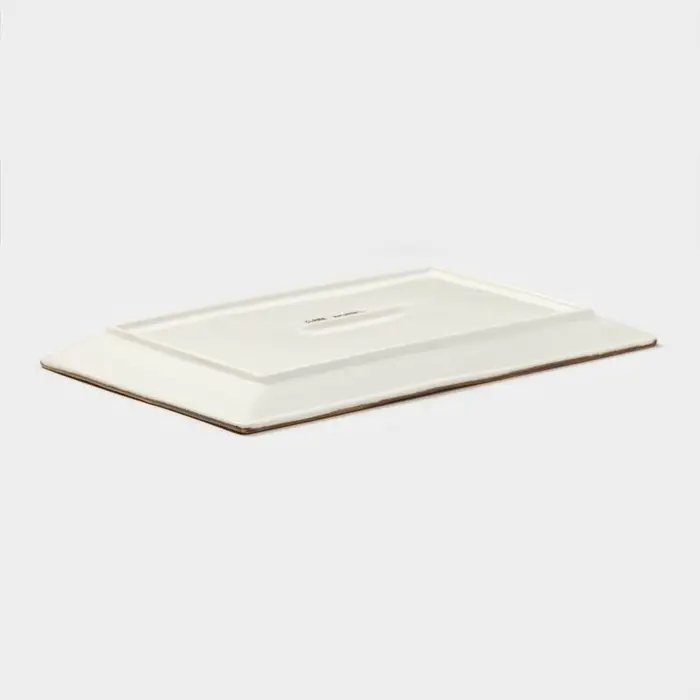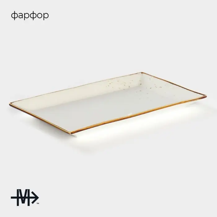 - Прямоугольное сервировочное блюдо из белого фарфора.