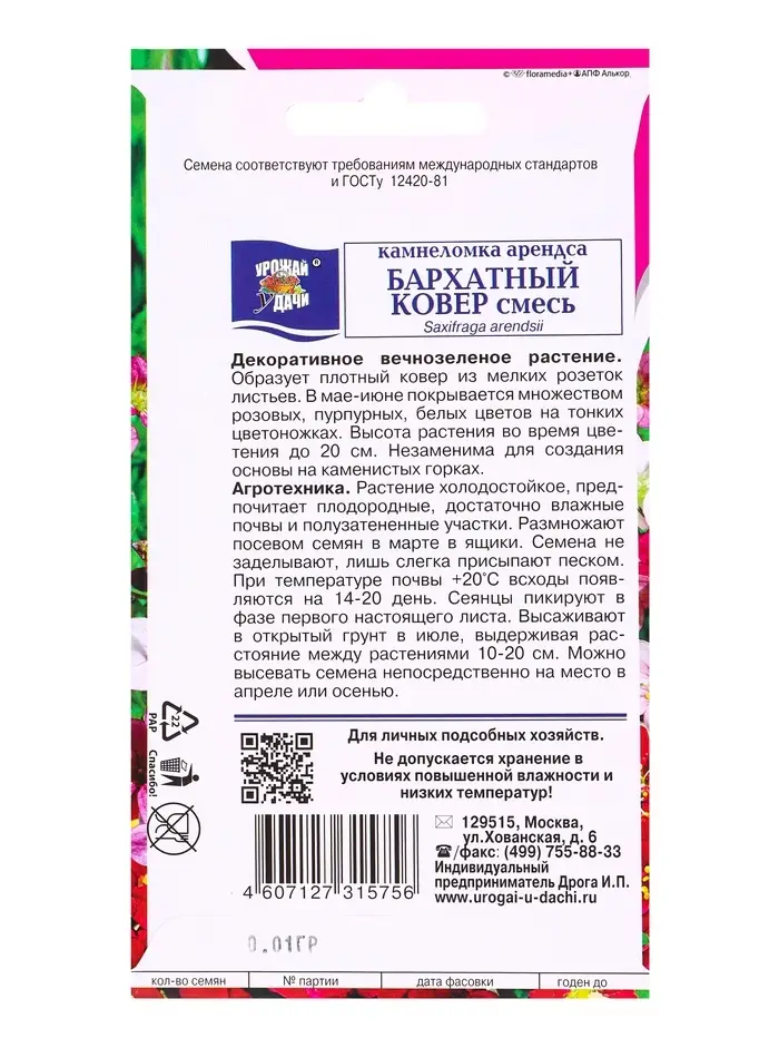 Набор семян Камнеломка "Бархатный ковер", 5 шт.
