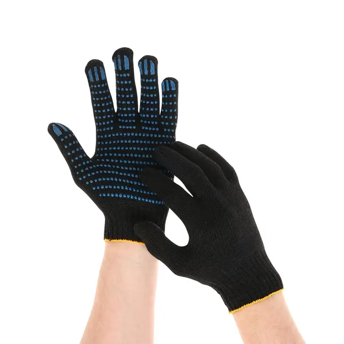 Перчатки садовые, хб, вязка 7 класс, 6 нитей, размер 10, с ПВХ точками, чёрные, Greengo