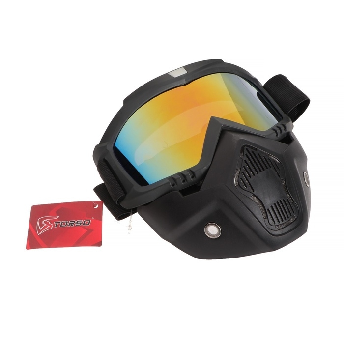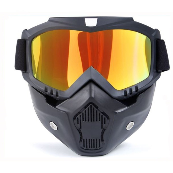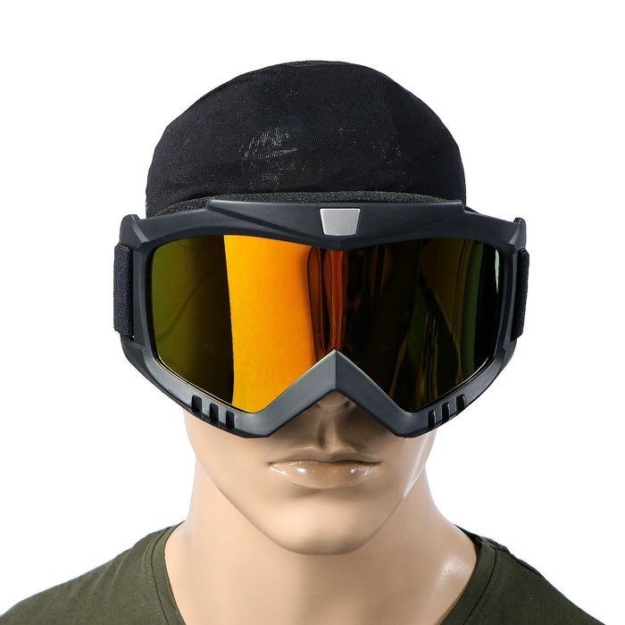 Очки-маска для езды на мототехнике, разборные, стекло золотой хром, черные