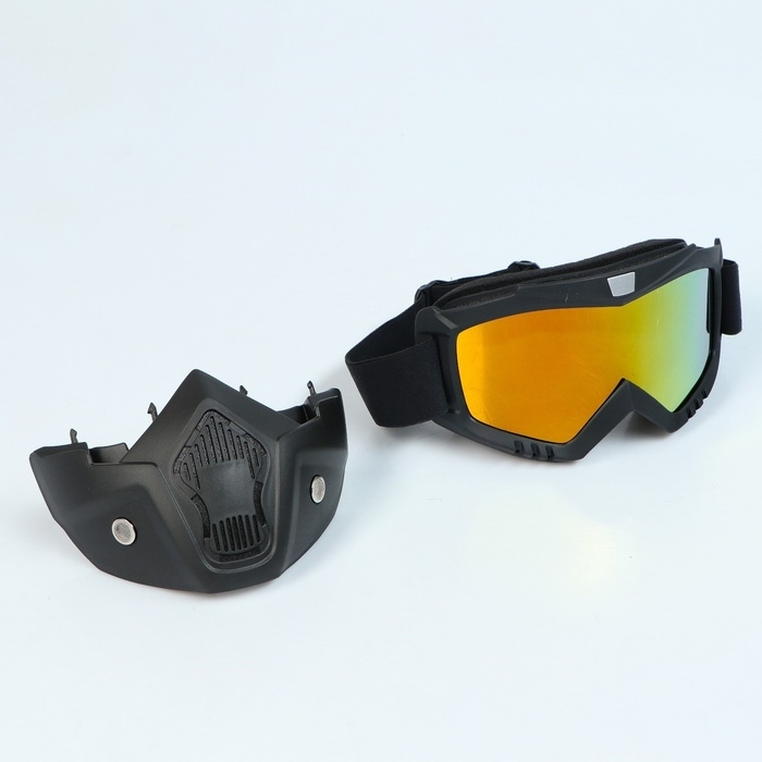 Очки-маска для езды на мототехнике, разборные, визор оранжевый, цвет черный
