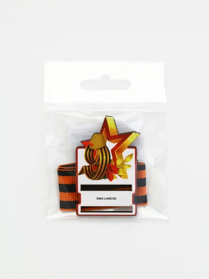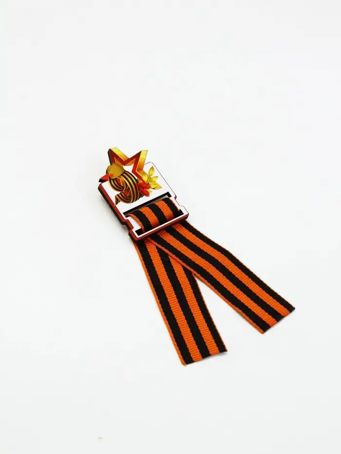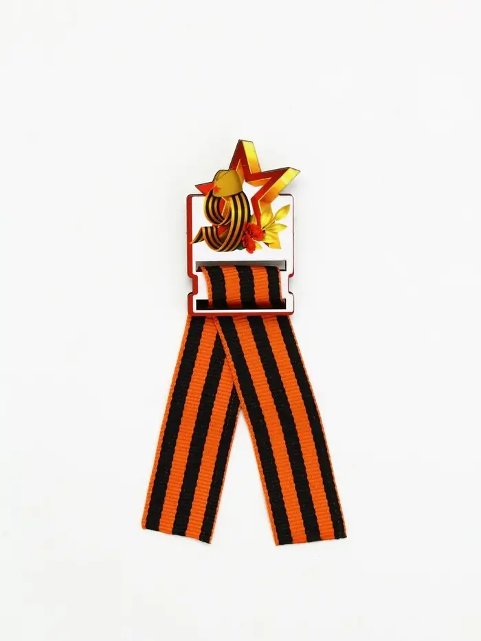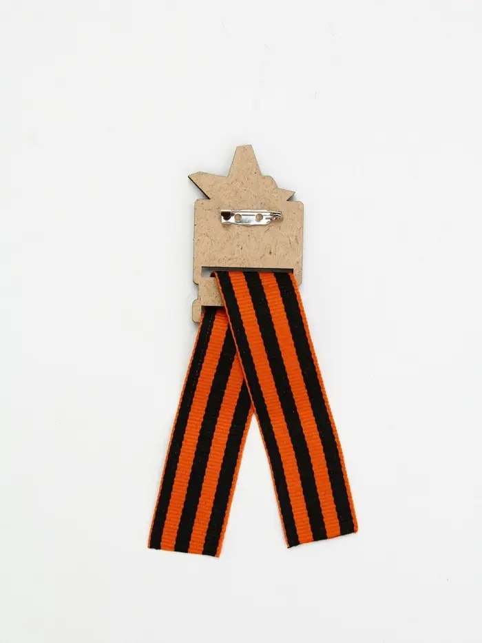 Значок деревянный с лентой "9 мая,звезда", георгиевская лента
