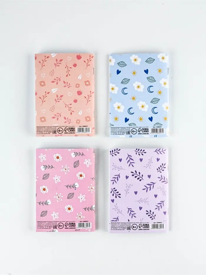 Набор блокнотов 4 шт. А6, 32 листа "Цветы"