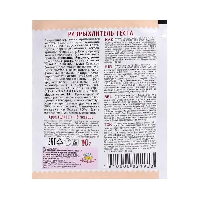 Разрыхлитель для теста «Приправыч» — это ваш надежный помощник на кухне, который поможет достичь совершенства в каждом блюде!