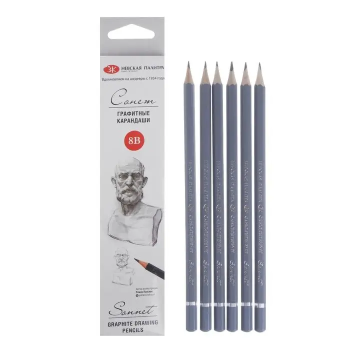 Карандаши "Сонет" идеальны для создания набросков, чертежей и других графических работ любой сложности. Изготовлены из высококачественного прочного графита в шестигранном корпусе из древесины липы диаметром 6,9 мм. Оптимальная толщина стержня позволяет создавать разнообразные эффекты. Карандаши отличаются гладкостью нанесения штриха, легко затачиваются. В набор входят карандаши твердостью 8В. Цветовая градация в дизайне корпуса карандашей обеспечивает комфортную работу.