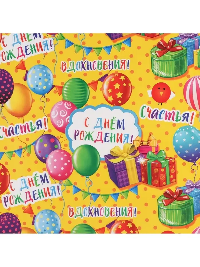 Бумага упаковочная глянцевая «С днём рождения!», 70 х 100 см