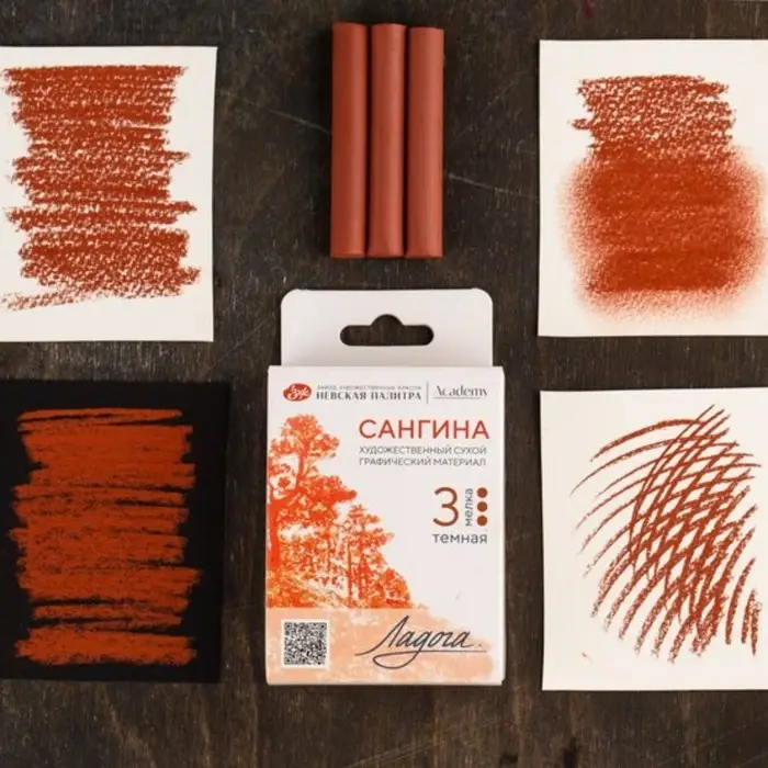 Сангина художественная тёмная, ЗХК "Ладога", 3 штуки, в картонной коробке