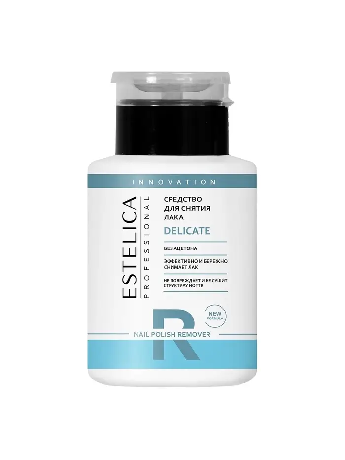 ESTELICA PROFESSIONAL DELICATE, средство для снятия лака 200 мл (помпа, 12 шт.) — профессиональное деликатное средство, специально разработанное для мягкого и эффективного удаления всех видов лаков с натуральных ногтей. Формула бережно ухаживает за ногтевой пластиной и кожей вокруг ногтей, не пересушивает их и не повреждает внешний вид ногтей.