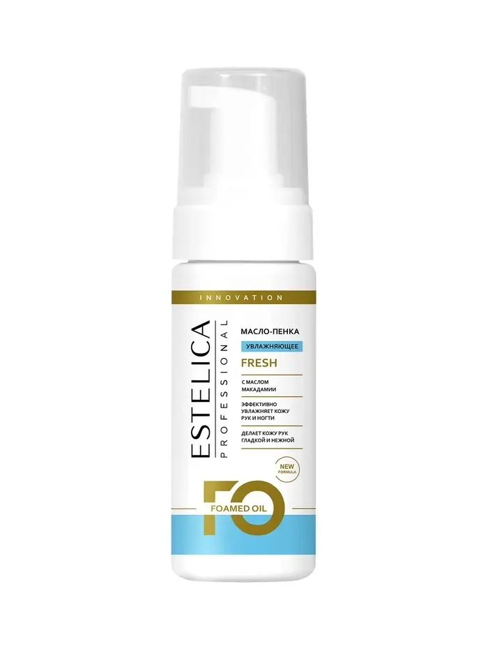 ESTELICA PROFESSIONAL FRESH, масло-пенка для рук и ногтей 150 мл (пенный дозатор, 12 шт.) — увлажняющее и тонизирующее средство с маслом макадамии, которое защищает кожу от сухости, обезвоживания и появления трещин. Уникальная формула масло-пенки нормализует водный баланс кожи, обладает омолаживающим эффектом и обогащает её витаминами и микроэлементами.
