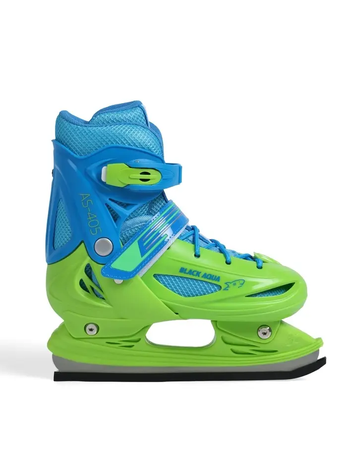 Коньки детские раздвижные BlackAqua, р. 30-33, для фитнеса, зелёные, синие