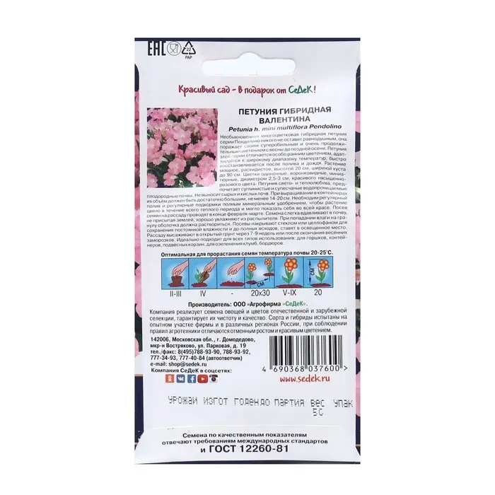 Посев семян на рассаду. Семена в гранулах! Гранулы располагают на поверхности почвы, не заделывая их, хорошо увлажняют из распылителя. При попадании влаги на гранулу оболочка должна раствориться. Посевы накрывают стеклом для сохранения постоянной влажности до полных всходов. Февральским посевам требуется дополнительная подсветка. Сеянцы пикируют в фазе одного-двух настоящих листьев. В фазе пяти-шести листьев проводят формирующую прищипку. Рассаду высаживают в открытый грунт, когда минует угроза заморозков.