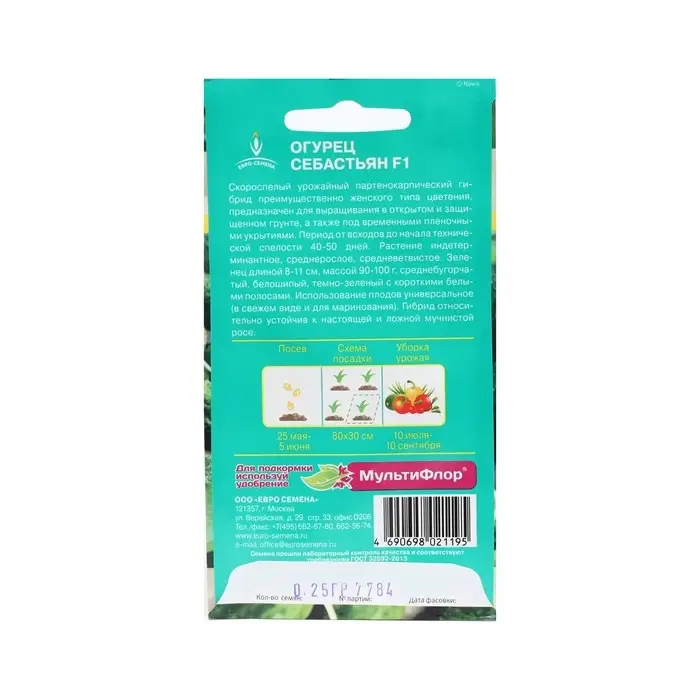 Семена Огурец "Себастьян", партенокарпический, F1, 0,25г.